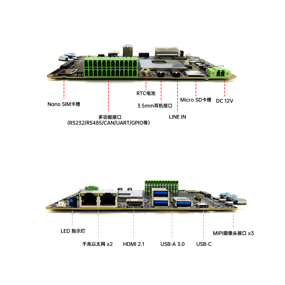 集成HDMI/RS232/RS485/千兆以太网/USB/WIFI 6/蓝牙5.1/5G通信扩展多功能于一体。工业级,性能强大,接口丰富,性能强悍,高品质音视频处理能力。